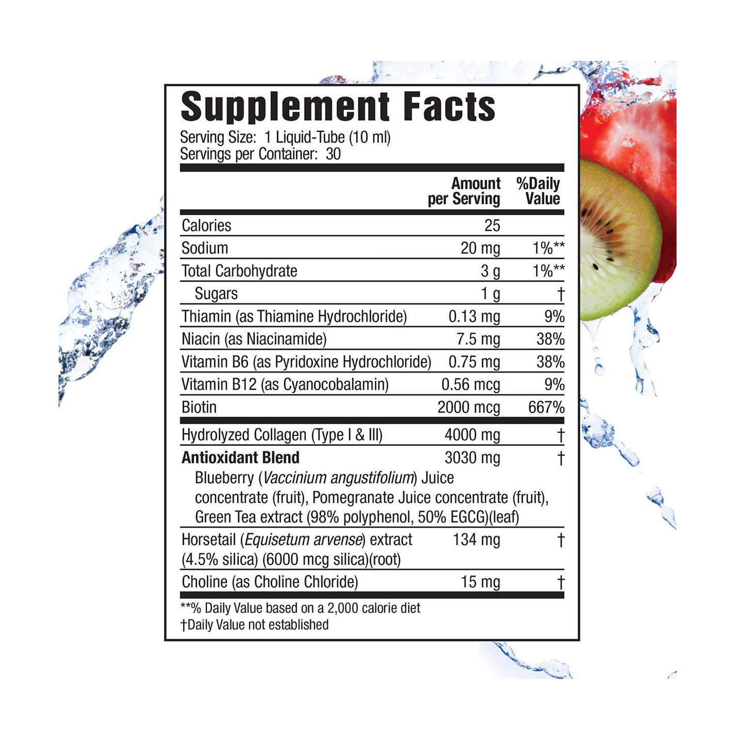- Hydrolyzed Collagen, dưỡng chất Silica, Biotin, Vitamin A, E, Thiamin (B1), Niacin (B3), B6, B12, ...
