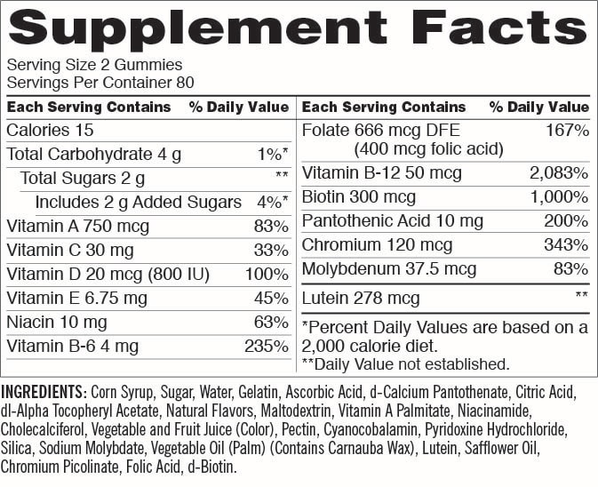 Thành phần quan trọng có trong kẹo dẻo Kirkland Signature Adult Multivitamin. Gummies của Mỹ.