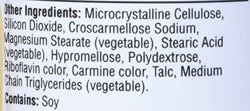 Thành phần khác: Microcrystaline Cellulose, Silicon Dioxide, Croscarmellose Sodium, Magnesium Stearate (vegetable), Stearic Acid (vegetable), Hypromellose, Polydextrose, Riboflavin color, Carmine color, Talc, Medium Chain Triglycerides (vegetable).
