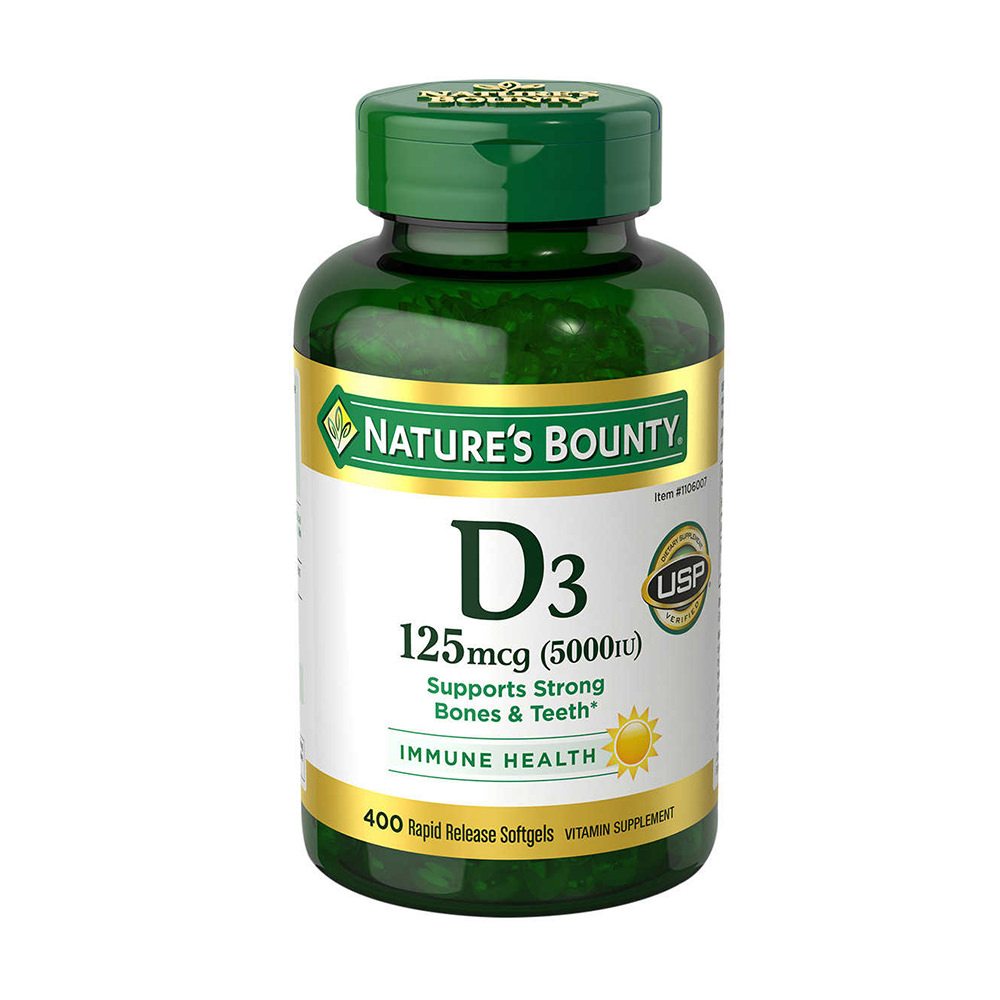 Vitamin D - "Vitamin ánh nắng" là một chất dinh dưỡng thiết yếu mà cơ thể tạo ra bằng cách chuyển đổi cholesterol trong cơ thể thông qua ánh nắng mặt trời. Tuy nhiên, văn hóa ngày nay và văn hóa của những "căn phòng", kem chống nắng lại thịnh hành và lối sống trong nhà gần như suốt ngày đêm làm giảm thiểu việc chúng ta tiếp xúc với ánh sáng mặt trời tự nhiên trong một khoảng thời gian cần thiết để hình thành đủ Vitamin D. Bổ sung Nature's Bounty Vitamin D3 là một cách dễ dàng để tăng lượng chất dinh dưỡng quan trọng này hàng ngày của bạn.