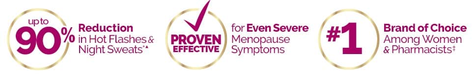 Chứa chiết xuất rễ đại hoàng Rhapontic đã được chứng minh lâm sàng (ERr 731®), một thành phần có nguồn gốc thực vật, thuoc và không chứa hormone được chứng minh lâm sàng để làm giảm TẤT CẢ các trieu chung chính của thời kỳ mãn kinh.