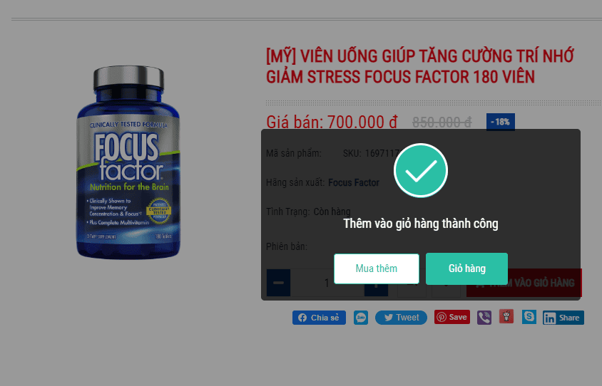 - Sau khi bấm chuột vào nút "THÊM VÀO GIỎ HÀNG" khách hàng có thể lựa chọn "MUA THÊM" hoặc "GIỎ HÀNG"