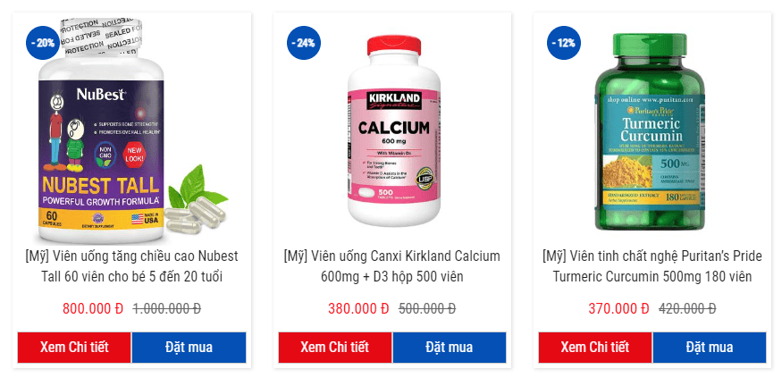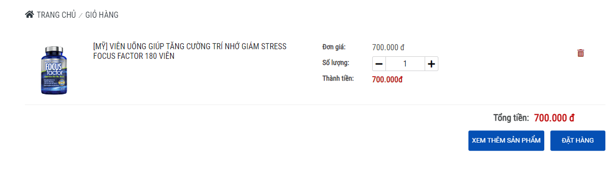Sau khi tìm kiếm và lựa chọn được sản phẩm ưng ý cho mình, Quý khách có thể bấm "ĐẶT MUA" hoặc bấm vào "XEM CHI TIẾT " chi tiết để xem thêm thông tin về sản phẩm . Tại đây, khách hàng chọn quy cách và Số lượng sản phẩm muốn mua và chọn mua sản phẩm bằng cách bấm chuột vào nút "THÊM VÀO GIỎ HÀNG".